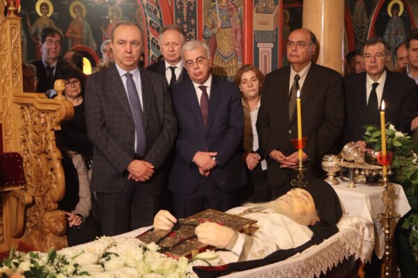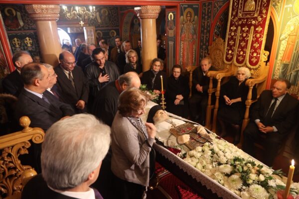 Από νωρίς έφτασαν στην αδελφότητα πολλοί πιστοί, από όλα τα μήκη και πλάτη της Μακεδονίας για να δώσουν τον τελευταίο ασπασμό στο σεβαστό Γέροντα.